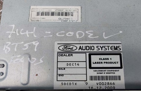 This Ford Focus MK2 SONY CD player was removed from a 2010 MK2 Ford Focus Titanium 5 Door Hatchback In Black With A 1.6 Litre (1596CC) SHDA 100 BHP 4 Cylinder 16V Petrol Engine And A 5 Speed Manual Gearbox.