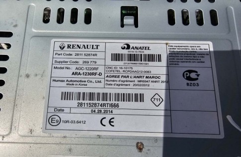 Renault Clio MK4 Radio Stereo Head Unit 281152874R AGC-1220RF